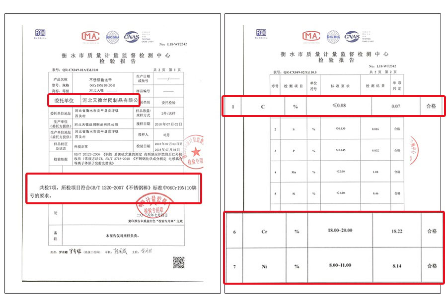 材質(zhì)檢測報告:合格
