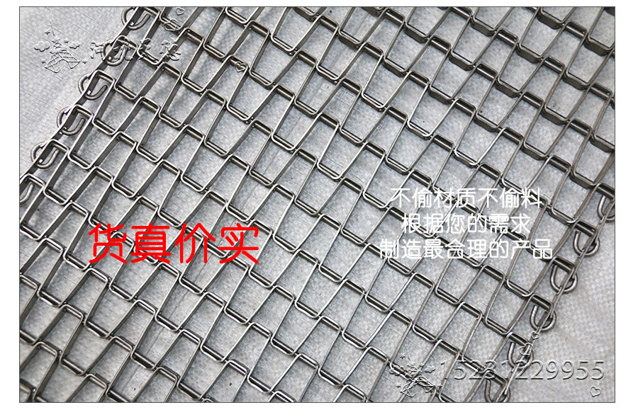 長城網(wǎng)帶材質(zhì):有A3低碳鋼、45#鋼、1Cr13耐熱鋼、 不銹鋼、304不銹鋼、1Cr18Ni9Ti不銹鋼、0Cr18Ni14NO2CU2耐熱耐酸鋼等