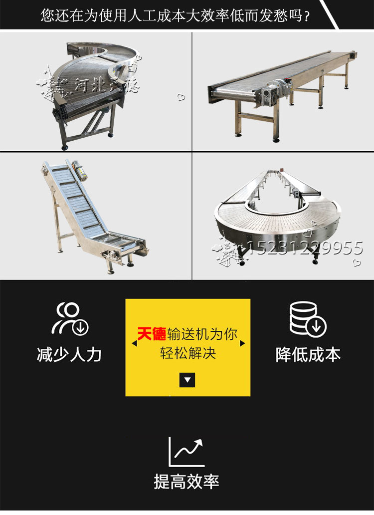 4.采用不同材質(zhì)的網(wǎng)帶可以起到不同的輸送作用并且滿足不同環(huán)境的需要,能夠滿足環(huán)境溫度零下-30度至120攝氏度之間的輸送要求。