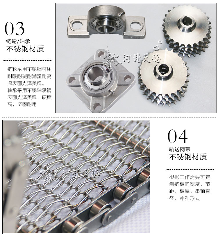 2.金屬網(wǎng)帶輸送機(jī)是對(duì)傳統(tǒng)皮帶式輸送機(jī)的補(bǔ)充,它克服了皮帶機(jī)皮帶撕裂、刺破、腐蝕的缺點(diǎn),為客戶提供的一種快捷、維護(hù)簡(jiǎn)單的輸送方式;